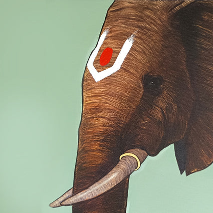 Our elephant paintings are entirely handmade by Sajaao's talented in-house Indian artists. Using premium acrylics and traditional techniques, each piece from the "Gajraaj" (King of Elephants) series bears a distinctive style and spiritual emotion. These limited-edition, handmade paintings are as individual as the magnificent creatures they depict (wise, powerful, and full of grace).